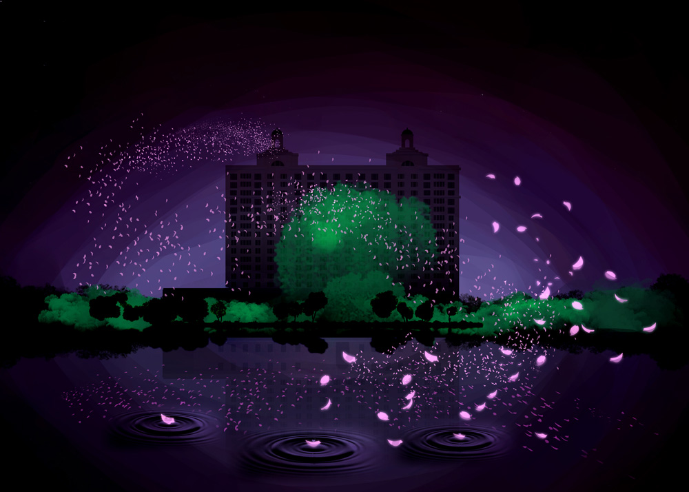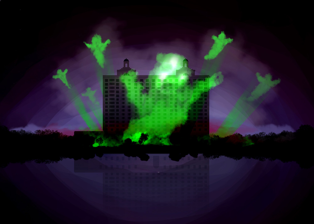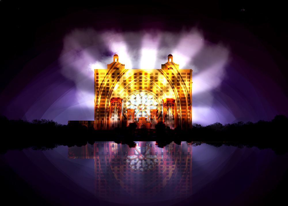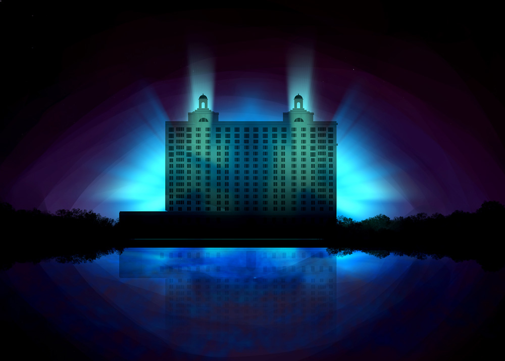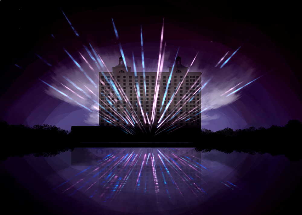The most logical place to propose a show like this is the Westin Savannah Harbor Golf Resort & Spa, a massive hotel that sits across the river from Savannah’s historic downtown. The building is highly visible from almost anywhere along River Street. Its position and orientation make it a near perfect canvas for painting spectacular stories with light and sound.